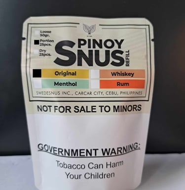 PinoySnus combines Swedish snus tradition with flavor profiles developed for the Philippine market. As a smoke-free product, it is used under the upper lip and does not involve combustion or inhaling smoke. PinoySnus is produced by Swedesnus Inc. in Cebu, Philippines and distributed through authorized partners nationwide.
